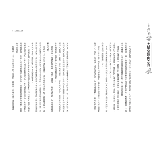 大風堂所收藏的歷代名蹟,包括董源的《瀟湘圖》、顧閎中《韓熙載夜宴圖》……郭熙、趙孟頫、元四大家、仇英、石濤、八大……其中《江堤晚景》可說是最富傳奇性的一幅畫……