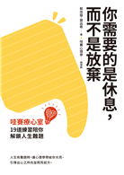 《你需要的是休息,而不是放棄》這本書,也是秉持這樣的態度,談到現代人常見的十九個生活困境,包括人際互動、自我關係與家人相處等面向,並為這些人生難題一一提出解方。