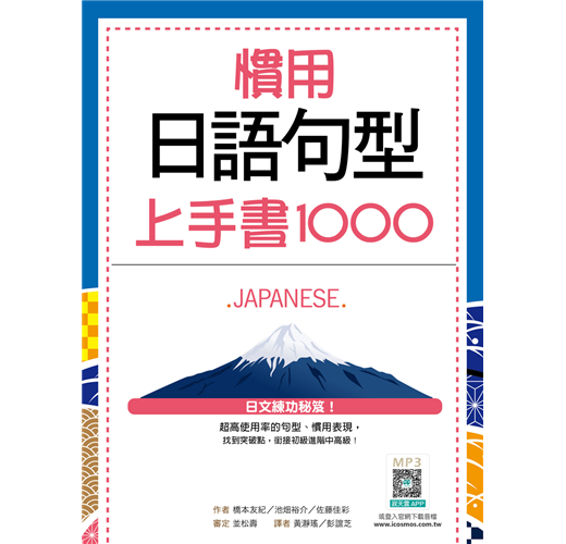 本書以實用為基準,選出1000條最常用的高頻基本句型和慣用句型,不但有中文解釋、文法結構補充,並有許多由淺入深的例句,可以讓學習者由例句中學會完整的概念,直接套用就能琅琅上口。