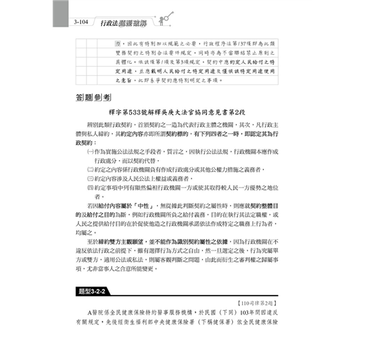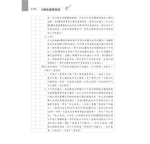 針對擬答內容部分,因為一些想法變更,做了些改寫,而針對部分內容有增加一些註腳說明,有些爭點不同學者針對一些相同爭點,也有不同想法,實務上更有一些分歧的見解,如果讀者對於此部分有疑惑,抑或某些題目讀者有不同想法,都歡迎讀者向學稔出版社反應,改版時筆者會嘗試做改寫、更多說明或引註讓讀者能更清楚筆者原本脈絡結論從何而來。當然也有可能是筆者才疏學淺所致,另也有可能是原本筆者用A學說體系來加以鋪陳,但這部分可能跟讀者原先讀到的B學說或其他體系脈絡思考有所不同,舉例來說,109年評分要點,某爭點適用「確認行政事實行為違法訴訟」救濟,這部分很多人可能閱讀上就會產生困惑?的確學說上有學者支持,但也有學者採否定見解,認為我國不存在此種訴訟類型,其實上開不同見解,筆者認為都沒錯,畢竟各有其依據跟說理,這算是行政法迷人之處?不過,真的就辛苦考生了,有時候公法切入角度不同,就會有不同想法,但只要有一定說理,改題老師學識淵博,應該都會給予相當肯定。
