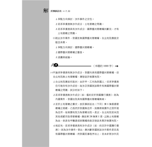 一份稱職的解題書應該要將目標設定在使讀者「學會如何釣魚(解題技巧),而不是只是拿到魚(答題模板)」。既然「看得懂題目在考什麼」只是寫出好答案的前提,而並非全部,那麼,如果大家的審題技巧及對於題目的敏感度藉由上述方式提升到一個程度後,就必須進一步處理相關見解的吸收!對此,可以藉由本書在題目或章節末尾所精選之「相關實務見解」或相關專題來獲取,甚至可以看筆者是如何將其轉化為解題內容。