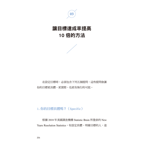 3.台灣版特別於書末附贈實用空白表單,讀者可加以利用,填寫完可撕下張貼於顯眼處,有助於實現目標