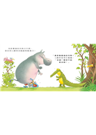 作者生動的故事書寫,讓小讀者們彷彿隔著書頁都能聽見河馬凶巴巴的怒吼、看著敢怒不敢言的小動物們受委屈的樣子,也令人好想為他們打抱不平,而當河馬終於遇上狠角色差點慘遭報應時,又忍不住樂得哈哈大笑!