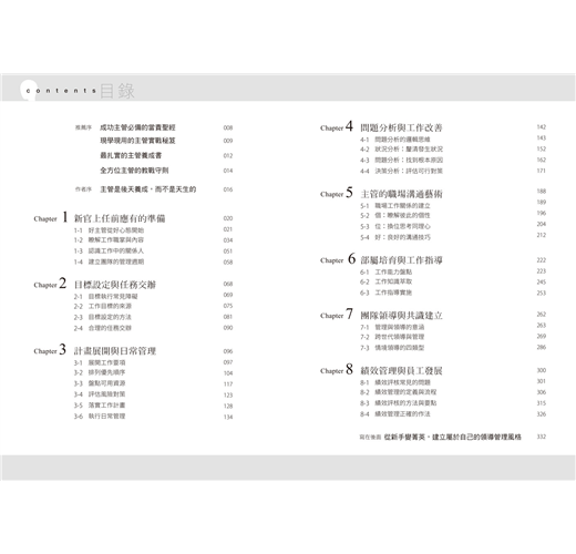 老手管理者的過程。因為我知道要成為上司滿意、部屬服氣、團隊獲利的主管所付出的代價,也從輔導的客戶身上瞭解到從自我懷疑到滿懷信心的帶領團隊的過程。我親眼見證到要成為一個主管,是要經過多少的學習,與反思調整,而我的目標,就是幫助正在看這本書的你,達到相同的成果。