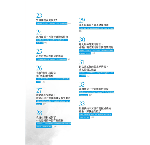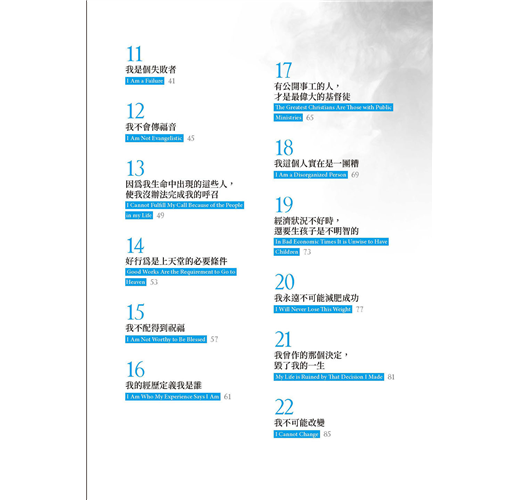我們可以說出深遠的神學觀,但仍深感無力,因為人生中的重要課題蒙受欺騙。這些和自己打架的思維,存在我們的潛意識之中,從未被描述出來。本書把許多謊言暴露出來,再揭露真理,使我們得自由。
