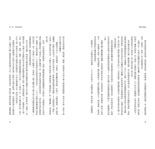 電子與網路興起帶來的新契機,造就的富貴層,與舊有上層結構不相通連。一邊發言聲量增加,動見觀瞻,社會影響力只增無減,一邊卻日漸消蝕,一眼望去,似乎只剩幾個金控家族還有能見度。不過,縱使三十年前看起來強健的結構體,已然衰敗,《總統的親戚》這部以龐大資料建構而成的重要專著,至今讀來並沒有脫節感,堪稱了解「戰後蔣氏父子統治與黨國體制一個重要的切角」。