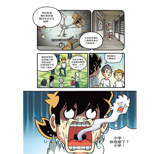 追著人跑的人體模型、飄浮在空中的課桌椅……