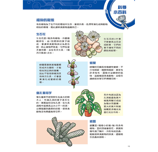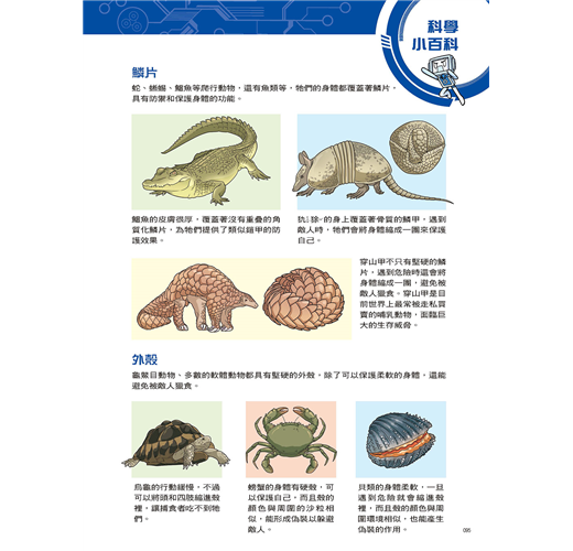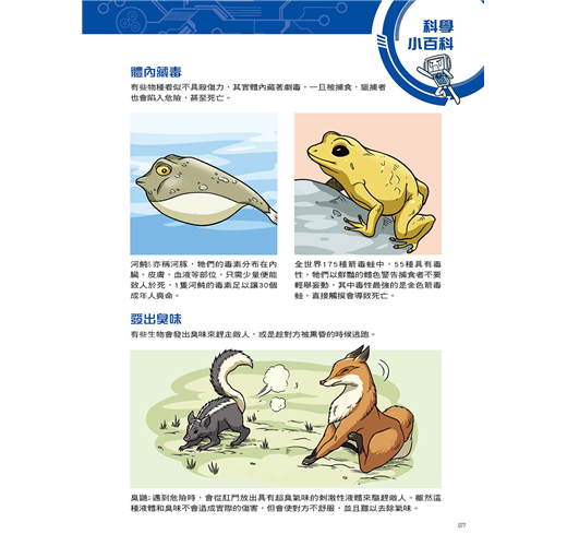 設有「科學小百科」單元,藉由X星際探險隊隊員的生動對話和淺顯易懂的文字,來介紹鯊魚身體頂部和底部顏色不同的原因、大鱷龜有如小蟲子的舌頭有什麼功用、個性溫馴的大象如何對抗敵人、蜂蘭的外觀和味道為什麼都很像蜜蜂、為什麼含羞草受到刺激就會合起來、大花犀角的花朵為什麼又大又臭等超炫知識,讓小朋友有系統的學習。