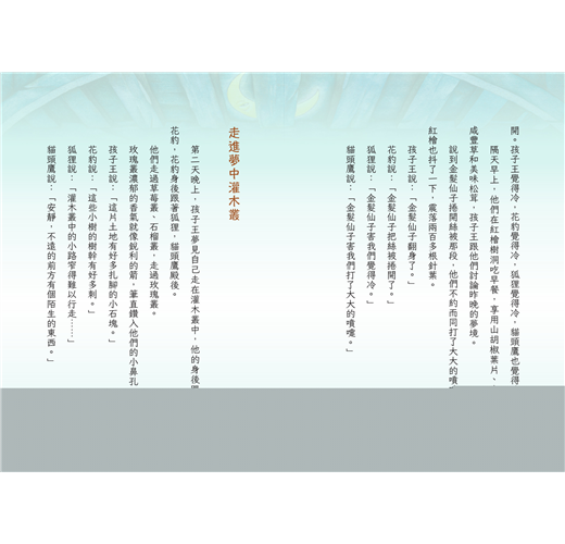 ■ 綠色的頭髮、藍色的眼珠,帥氣的童話森林孩子王,帶著三個動物好友走入夢境,究竟遇見了誰,讓他們紅了臉?