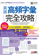 《英語高頻字彙完全攻略(增修擴編版)》是一本針對升大學考試而設計的字彙書。單字的編纂參考大考中心所頒布 111 學年度起適用之「高中英文參考詞彙表」,此參考詞彙表分為六級,而本書選用的是其中第三級至第六級的字彙,並根據單字在學測歷屆考古題中出現的頻率,篩選出用字頻率較高的重要單字。這些單字不但常出現在學測中,也是全民英檢、多益考試及日常閱讀等的必備字彙,對於不論是要準備考試或是精進英文能力的讀者,皆能大有助益。