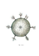 我把近三十幅畫裝進書中。最近,我在畫野生草。無論在哪都能好好生長,有著潮溼草味的葉;打破平衡一側枯爛一側健在的花瓣;同時擺盪著柔軟細毛與尖刺的莖。之所以熱衷於這類創作,是因為我體內複雜而怪奇的那些元素,在現存世界中沒有棲身之所。可我並不想駐留在孤身一人的烏托邦,因此如同敞開心門那般,在書中攤開了我的畫,希望能透過畫作來交流文句無法承載的生動。