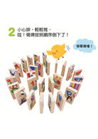 2.小心將骨牌一片一片直立對齊排好,用手指輕輕一推,骨牌就會按照順序倒下了!