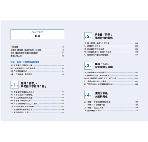 「擅長表達的人有兩種:一種是會畫畫的人,另一種是不會畫畫但懂得用線條和幾何圖案表現想法的人。不管你是哪一種人,這本書都可以讓你做得更好。」──劉奕酉,鉑澈行銷顧問策略長