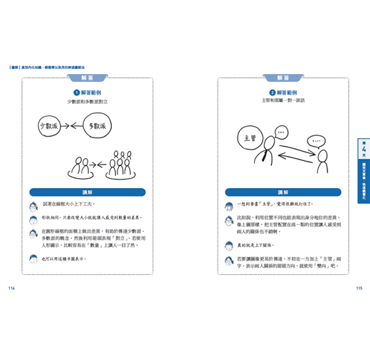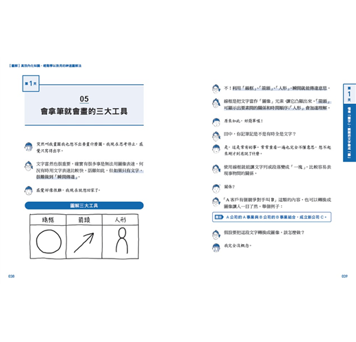 本書為了讓覺得自己不擅長繪畫、對圖解抗拒的人也能產生共鳴,能願意閱讀並增進技能,因此採用師生對話的形式。