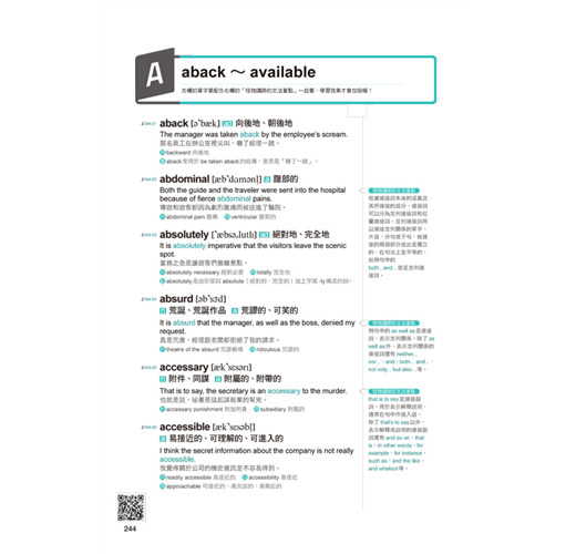 每個主要單字皆隨機補充衍生詞彙、多益常考同義字、片語補充、重點提示或是記憶法小撇步。無論是動詞三態變化,或是形容詞比較級、最高級,一次學好、學滿!
