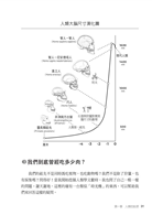右圖中,你可以看到我們祖先腦的尺寸在這百萬年間成長的歷程。在 大約 400 萬年前,你會看到露西跟她南方古猿支系。她的腦尺寸跟一顆小 型葡萄柚差不多大。然而,介於露西跟巧人的時代之間,人腦增長為一棵 中型大小的葡萄柚了:大概 500cc 左右。接著,在 250 萬年前,隨著石器 與獵捕行為的降臨,我們祖先的大腦開始更加快速的增大。事實上,它們 在接下來的 100 萬年間,增長為原先的兩倍大。根據化石紀錄顯示,我們 的腦尺寸在約 4 萬年前,達到最大值,也就是 1600cc,在那之後,我們的 腦微微地縮小了。這個圖表帶給我們的訊息是,我們祖先大腦尺寸增長速 率最重要的轉捩點,與石器和獵捕行為的出現相符。我們人類之所以是今 天的樣子,是因為我們食用動物。