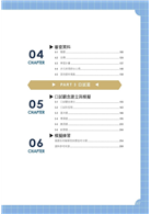 第三篇為口試篇,包含兩章,第五章為口試觀念建立和模擬,先建立口試的基本觀念,接者在介紹幾種口試型態,最後的部分為各校中常出現的口試題目,其中會以一班同學回答的範例和建議範例作比較,好讓同學參考並從中找到適合自己的回答方式;第六章則為模擬練習,收錄了許多常見的口試類型。