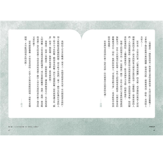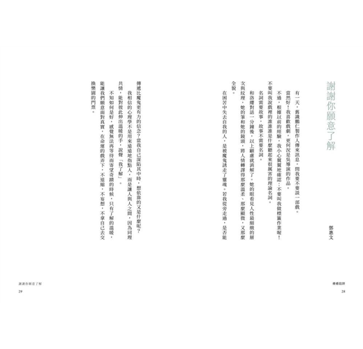 人們確實會「相信一點什麼」,化寄託為生活下去的動力。但當「對未知的好奇」反客為主,成為你我的生命主宰時,又要怎麼自處?一名編劇與心理專家在書裡交換生命歷練,共修對於人性的見解,更點出真正的療癒與成長,是要「承擔」與「行動」。