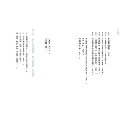 我不會保證讀者看完後,可以「一夕開悟,清涼解脫」。這書冊和《我願意》的戲劇一樣,都不是心靈雞湯,更不是處方箋,毋寧是一個提供你傾聽與訴說的樹洞。──黃鵬仁/資深媒體人