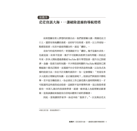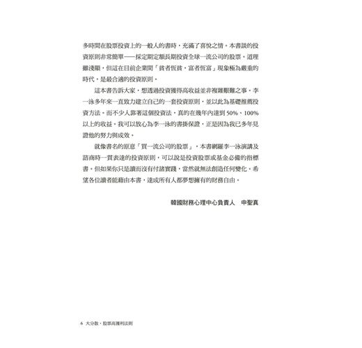曾在企業組織講課超過數百次,也從一般消費者的角度,教授了選擇金融商品的標準。有客戶長期投資本書介紹的全球一流公司的股票,累計回報率超過100%。