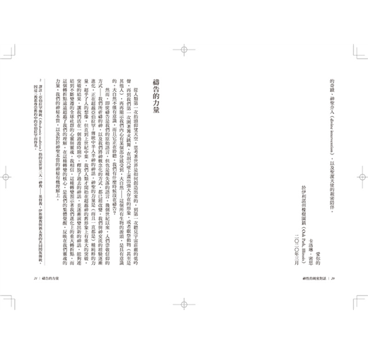 「卡洛琳‧密思會教你一種全新的禱告方式。與神一起禱告,而非向神禱告。這本神祕的手冊包含了一百篇美妙的禱詞,也是與聖靈親近的神聖時刻,可以幫助你養成每日深度禱告的習慣,為你的生活帶來全新階段的指引、恩典與啟發。」