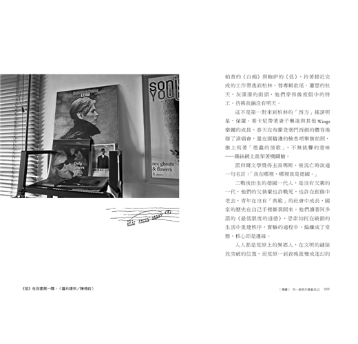 大衛.鮑伊和大師布萊恩.伊諾在柏林圍牆邊的錄音室做出了「柏林三部曲」,是他藝術生命的又一次大轉彎。有人說:大衛.鮑伊就在這裡創造了搖滾的未來。感謝上蒼讓他活到了69歲,而且直到生命的終點,仍然處在創作的顛峰──這實在是地球人的福氣。——馬世芳(廣播人、作家)