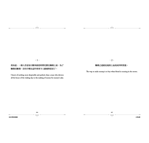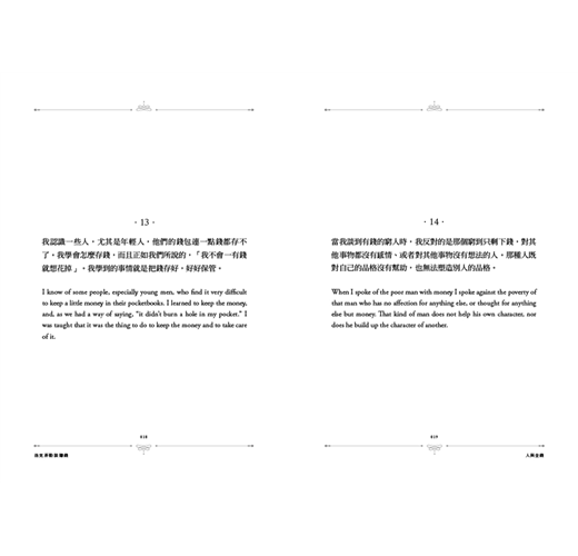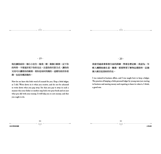 為了更貼近洛克菲勒的真實想法,不假外人演繹,本書不只有流暢的中文翻譯,還附上英文(原文)對照,真實還原這位傳奇巨富對市場的觀察力與財務管理的思維,了解他奠定家族財力、傳承七代不衰的祕密。