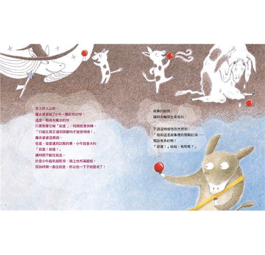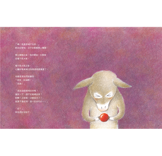 相信自己,就能成就自己;相信自己,就能克服恐懼。阿吉想藉此逃避許多事情,但是想起魔法是有代價的,於是阿吉忍耐、阿吉等待,連最害怕的唱歌也克服了。原來紅球的魔法在於「相信自己」。──劉書帆(「童遊繪本╳Bonnie」版主、兒童閱讀推廣家)