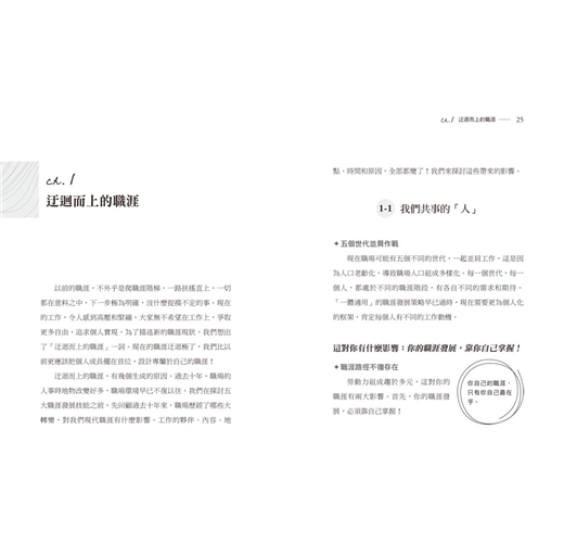 光是閱讀這本書,你就是在採取行動了!你主動學習和提升自己,已經成功了一半!我們建議大家,保持開放心胸,練習自我覺察,把學習擺第一,你會在迂迴而上的職涯大放異彩,實現自我。