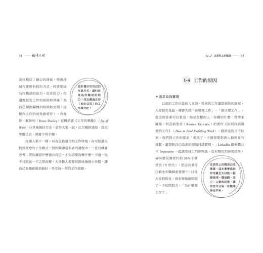 ★ Google EMEA地區業務營運總裁 麥特.布利汀(Matt Brittin)推薦:「超棒的一本書,教大家如何過幸福有意義的職涯人生,一切從自己開始,先認識自己和想追求的價值,書中收錄許多簡單的練習,幫助你深入思考自己是怎樣的人,以及想如何應用工作時間。」