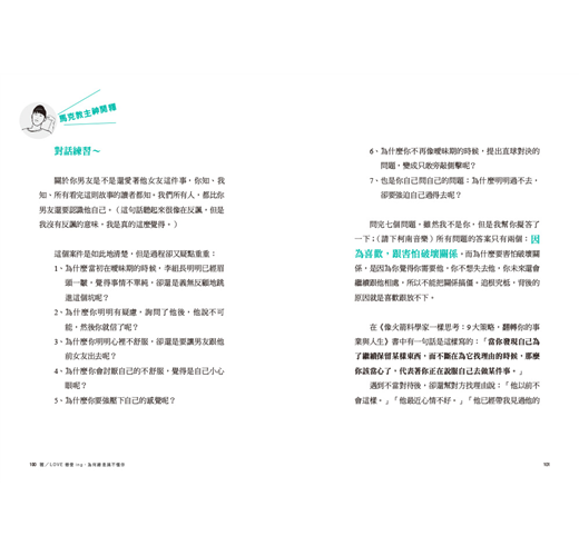 例如前面寫的七大問,我根本不是真的要問問題,那些問題只是要鋪陳我的答案而已,如果你用這種咄咄逼人的方式在經營關係,肯定是吵架吵不完,冷暴力凍到底。