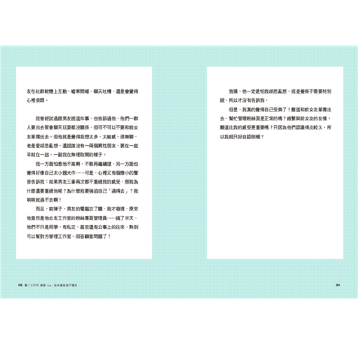 但是,我真的覺得自己受夠了!難道和前女友單獨出去、幫忙管理粉絲頁是正常的嗎?維繫與前女友的友情,難道比我的感受更重要嗎?只因為他們認識得比較久,所以我就只好自認倒楣?