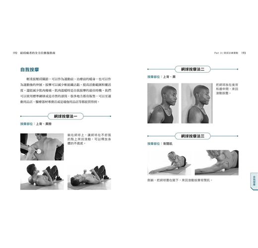 按摩可以減少軟組織沾黏、提高肩關節的活動範圍和靈活度,並減少肌肉痠痛。本書示範10種自我按摩與冰敷的方法,利用網球或滾筒即能釋放肩膀不適。