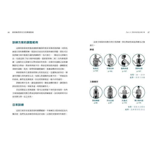 肌力訓練很重要,但練過頭會造成身體緊繃,而著重伸展而不訓練肌力,也會造成關節鬆弛而再次受傷,所以本書提供結合兩者的運動計劃,在家利用桌椅、牆壁、地板就能進行。