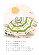 此後,主人家特別買了一頂與眾不同的遮陽傘,不論海邊有多擠,那和哈利身上花紋一模一樣的白底黑點,都讓哈利可以馬上找到,而且那頂傘好大,再大的太陽也無須擔心!