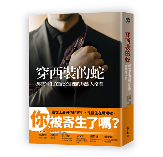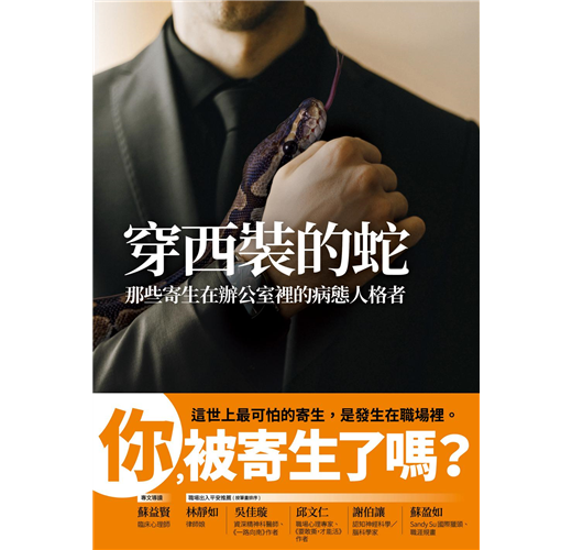 各大公司企業裡寄生著大量的穿西裝的蛇;就大部分職涯成功的衡量標準來看,他們往往是人生勝利組,同事們也看不出他們破壞式的人格特質。可是,千萬不要以為自己只是一介老實誠懇的上班族,就不會被這些蛇心同事盯上,一旦沒有小心提防,你,往往就是淪為他們往上晉升的墊腳石和工具人。