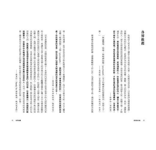 做事辦差時精明幹練、運籌帷幄時工於心計、為達目標時不擇手段、過河拆橋時冷血無情。你的周遭,是不是也有符合如此描述之人?根據統計,每百人中就有大約一至五人擁有這種「精神病態」人格(psychopathy)。面對這些「穿著西裝的蛇」,究竟該如何應對與自處?你所需要的答案,就在犯罪心理學大師海爾的這本經典著作之中!