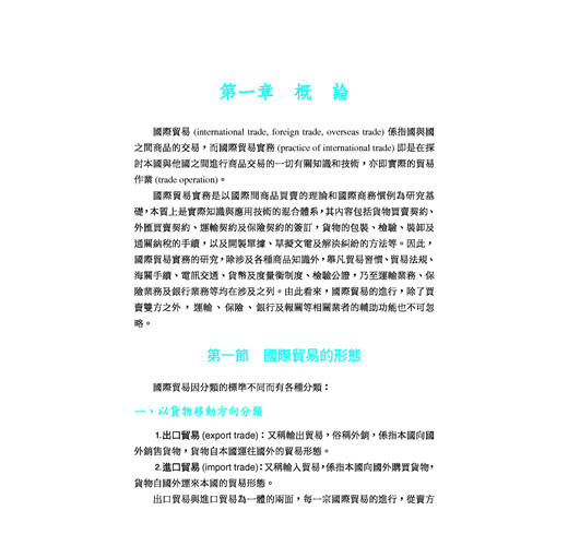 本書旨在作為大學與技術學院國際貿易實務課程之教本,並供有志從事貿易實務的社會人士參考之用。