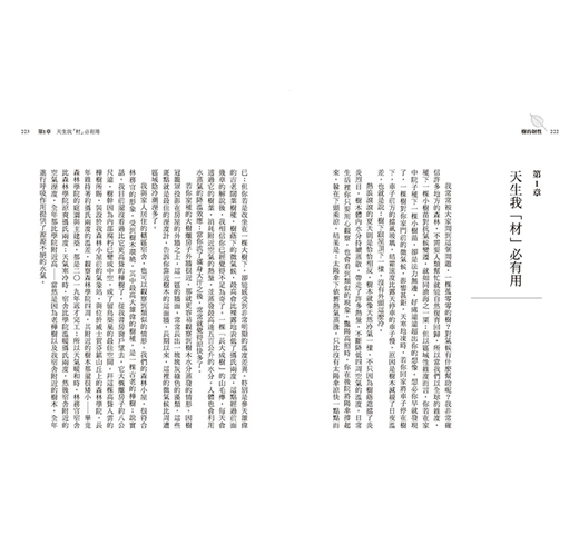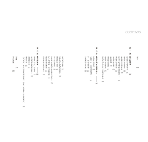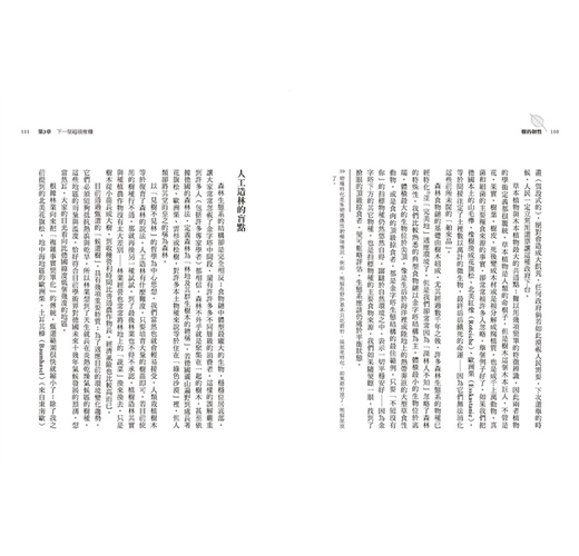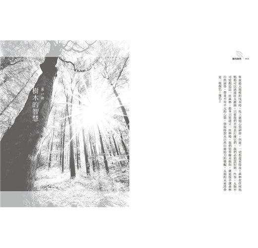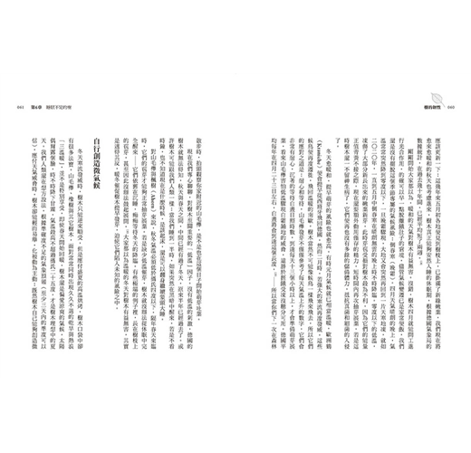 人類開墾土地、砍伐木材、清除老樹等作為,已使森林在當下陷入危機。本書引用最新的研究與實驗成果,證明森林不僅是負責鎖住二氧化碳的保險庫,還有調節全球水文、減緩溫差的影響力;渥雷本疾呼,以生態體系的角度來看,森林真正的價值遠比我們想像的高。