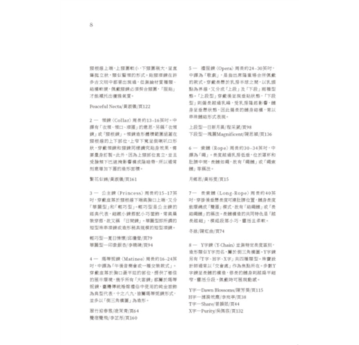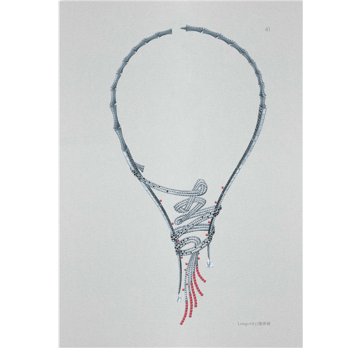 以手繪方式細緻精密的如實呈現珠寶工藝,才得以將圖面完整的複製成珠寶實品。由數千餘件國際珠寶設計參賽作品中,精選出147件項鍊首飾的原創設計圖稿,其中有56件為得獎作品,10件被製造成實體產品,得以對照圖稿與成品的珠寶工藝美學。