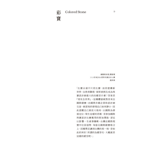 珠寶設計原創繪本是臺灣珠寶技職教育史上,第一本學員珠寶設計的創作專輯,匯聚了2011–2020年期間的38場國際珠寶設計比賽參賽作品。