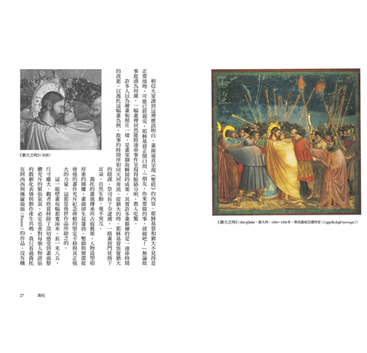 相信大家讀到這裡應該明白,畫面逼真呈現《聖經》的內容。耶穌基督和猶大不見得是正要接吻,可能已經親完,耶穌基督正開口問:「朋友,你來要做的事,就做吧!」無論故事起頭為何處,一幅畫裡居然能將連串事件呈現得脈絡分明,教人吃驚。