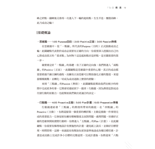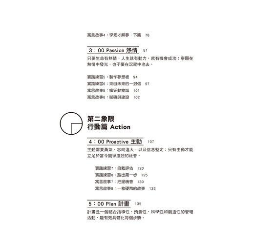 「4點鐘」的Proactive(主動),這是第一個重要的轉折點。主動是推動一件事情完成的重要能力,它會促使你擁有積極態度去面對問題、處理問題。