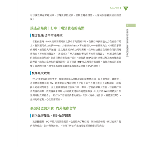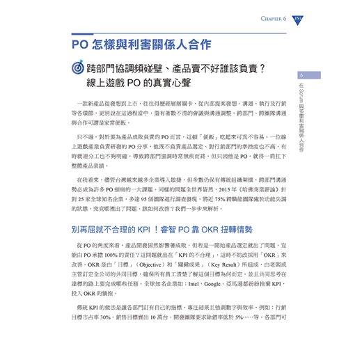 ✪ 全書內容訪談超過20位、遍及10大產業的PO,將其經驗彙整為通用、原則性的文章,深入解析痛點與解方。
