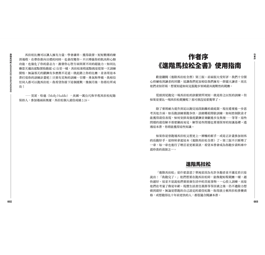 如果你是曾跑過馬拉松又想更上一層樓的新手,或是正計畫參加初馬的長跑好手,是時候拾起這本《進階馬拉松全書》了。第三版不只新增了一章,每一章也都增訂並更新資訊,希望本書會成為你跑步資料庫中最珍貴的資源之一。