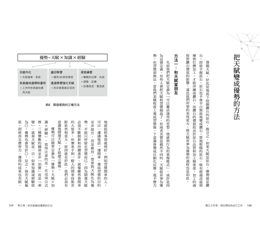 •思考力──透過書中介紹的各種天賦測驗、〈天賦檔案〉、〈工作價值列表〉等,幫你找出自己的天賦。