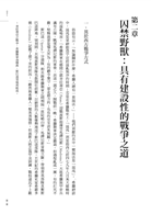 「這本書詳盡且有趣地敘述自有人類以來,競爭就一直伴隨著人們的生活;隨著人類社會的組織化與使用工具的進步,競爭逐漸發展成各種型式的鬥爭,而鬥爭最直接的方式即為戰爭。1760年代工業革命之後,人類逐漸掌握了大規模毀滅性的武器,第一次與第二次世界大戰,見證了人類利用武器來攫取資源的殺戮的行為;未來的戰爭形態將進一步結合科技、價值與制度,而成為綜合性戰爭(comprehensive war)或超限戰(unlimited war)。雖然人類一直嚮往和平,但歷史不斷提醒人們一個極為弔詭的邏輯:『在人類社會中,唯一能阻止戰爭的是有效備戰、嚇阻或戰爭本身。』」
