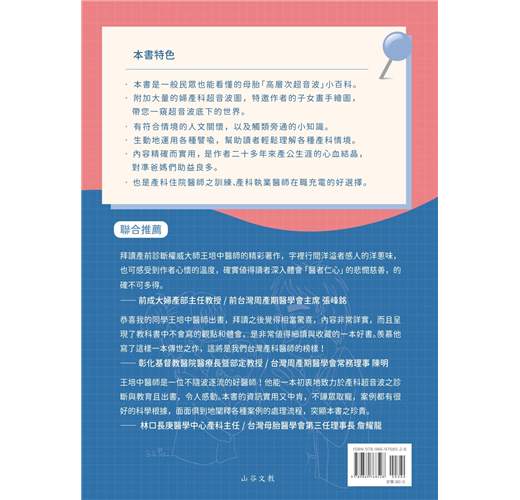 本書的內容非常精確而實用,是作者二十多年來產公生涯的心血結晶,相信對於想要了解超音波訊息的孕產婦夫妻們,甚至是想要學習產科超音波的醫學生和年輕醫師們,都會有相當的幫助。
