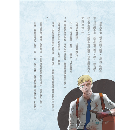 亞森·羅蘋這樣的說詞,誰會懷疑他呢?他渾身都是血!還幫忙捉住了逃犯,大家都看見了。