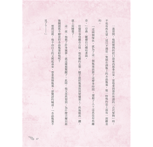想到這裡,他不由自主的又爬起身來,想拿那個瓶塞,卻驚訝的喊道:「水晶瓶塞不見了?……」
